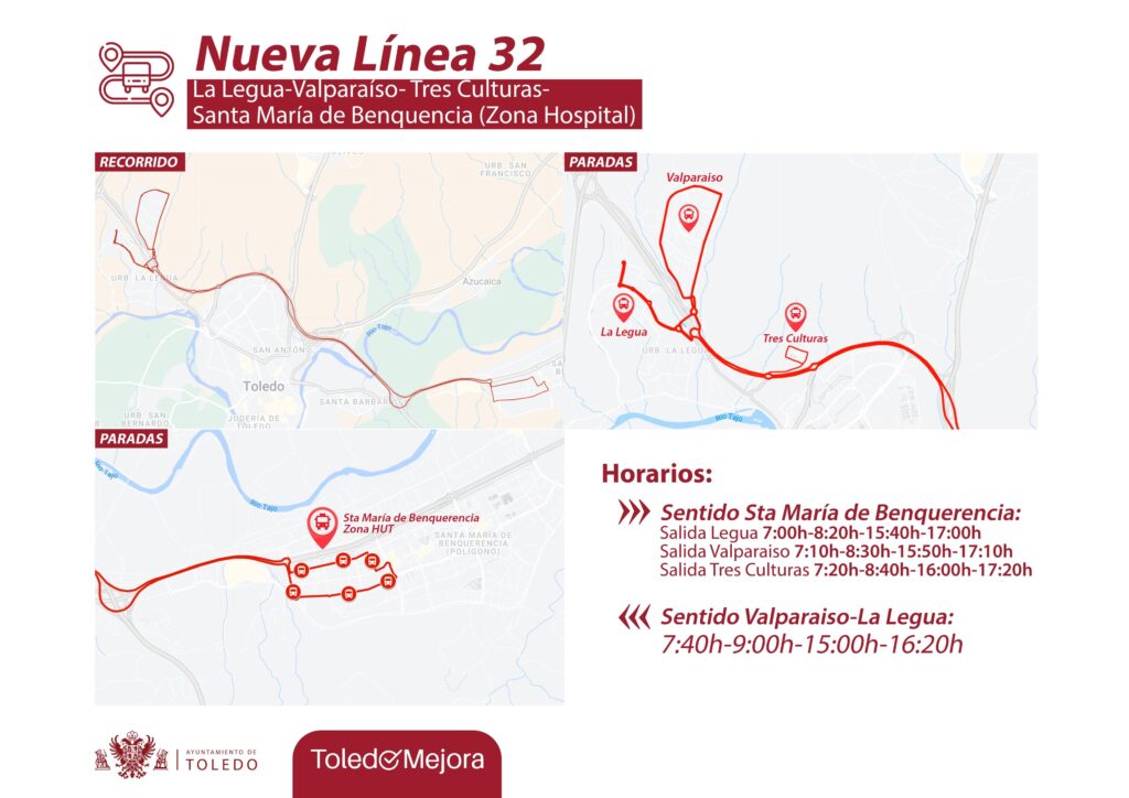 La línea comunicará de manera directa La Legua y Valparaíso, un núcleo de población de más de 6.000 habitantes, con el barrio Tres Culturas y con Santa María de Benquerencia, en la zona próxima al Hospital Universitario de Toledo y las consejerías, ha informado el Ayuntamiento en nota de prensa.