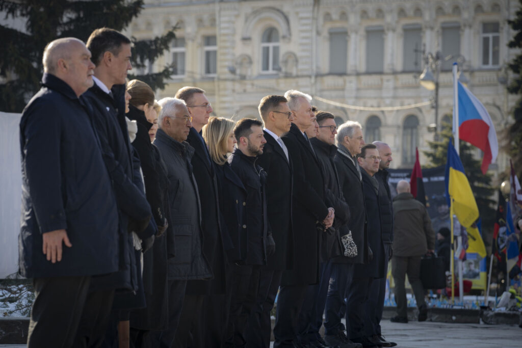 Los líderes europeos que han viajado este lunes a Kiev para brindar su apoyo coincidiendo con el aniversario de la invasión rusa han reafirmado su apoyo para que Ucrania se incorpore a la Unión Europea, en un frente común a medio plazo que han querido reforzar en la misma medida en que han considerado prematuro poner sobre la mesa el debate lanzado por varios gobiernos en favor del despliegue de tropas occidentales sobre el terreno.