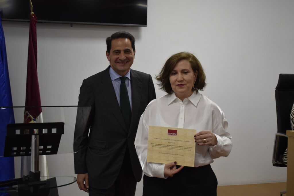 Este premio, patrocinado por la empresa Ajusa y la UCLM, ha sido recogido por la galardonada durante un acto institucional que ha estado presidido por el rector de la institución académica, Julián Garde, junto a la decana de la Facultad de Relaciones Laborales y Recursos Humanos de Albacete, Aurora Galán; la directora del Aula y profesora de la UCLM, María José Romero; y el decano del Colegio de la Abogacía de Albacete, Albino Escribano, encargado de hacer entrega del premio.