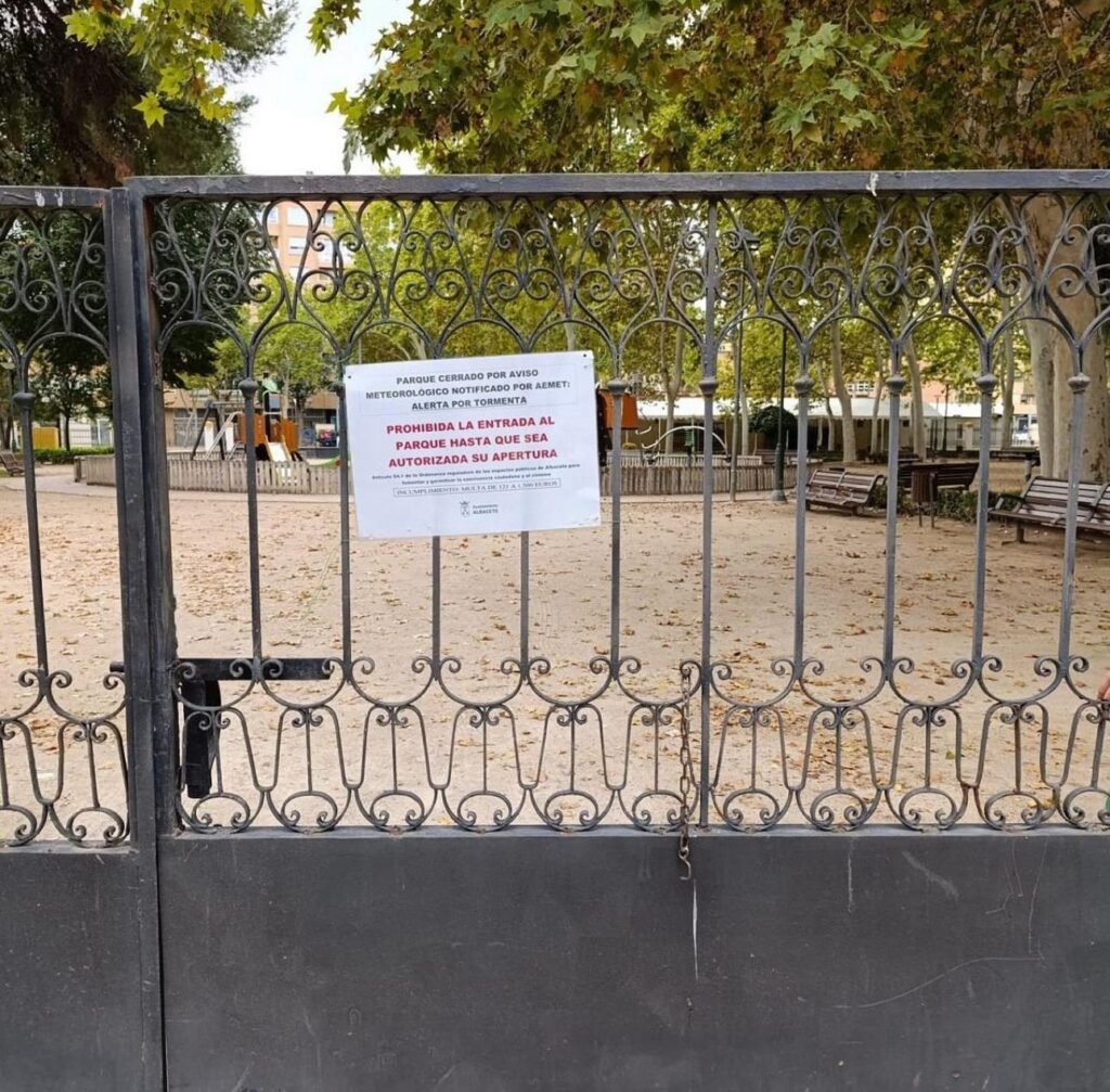 Parque de Albacete cerrado ante el aviso amarillo por lluvias.