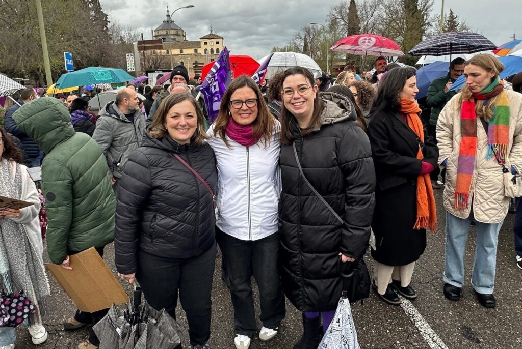 La portavoz de Igualdad del PSOE, la portavoz del Gobierno de C-LM, y la delegada provincial de Igualdad en la marcha convocada por la Plataforma 8M en Toledo.