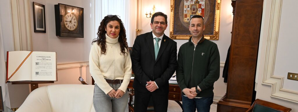El presidente de la Diputación de Ciudad Real, Miguel Ángel Valverde, reunido con el alcalde de El Robledo, Gustavo Ormeño, y la primera teniente de alcalde, Mónica Sánchez.