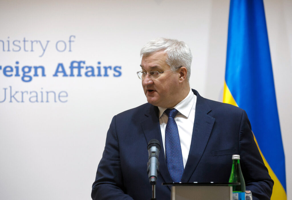 Archivo – El ministro de Exteriores de Ucrania, Andri SIbiga, durante una rueda de prensa en Kiev (archivo)