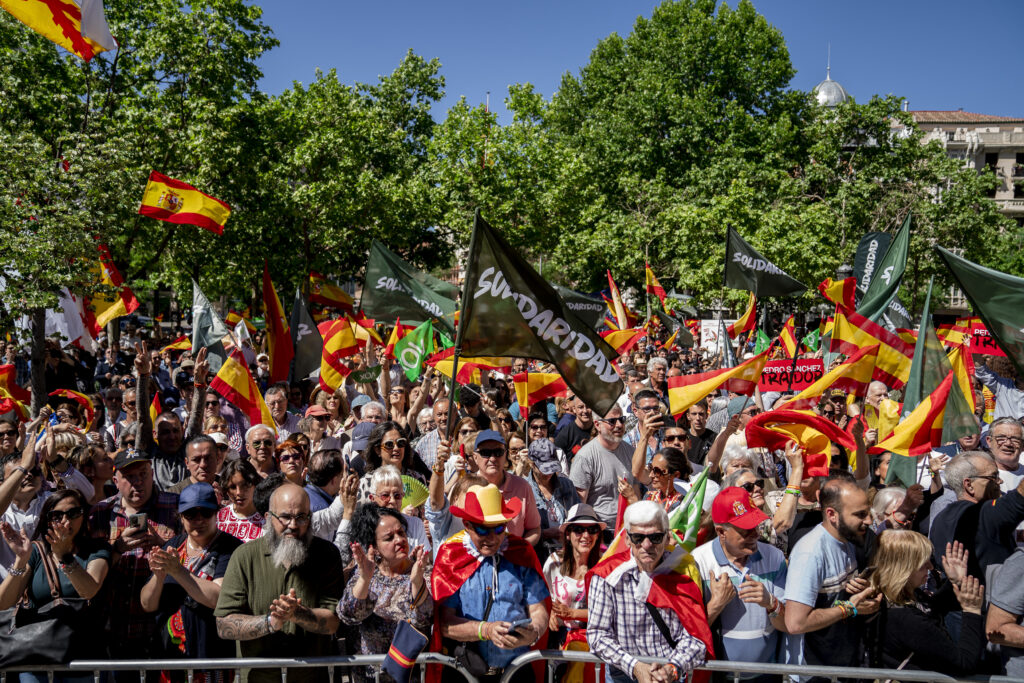 Archivo – Decenas de personas con banderas de España acuden a un mitin de VOX y Solidaridad por el Día Internacional del Trabajador, en la Plaza de Chamberí, a 1 de mayo de 2023, en Madrid (España).
