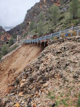 Corte en la CM-3203 en Ayna por un derrumbamiento del firme.