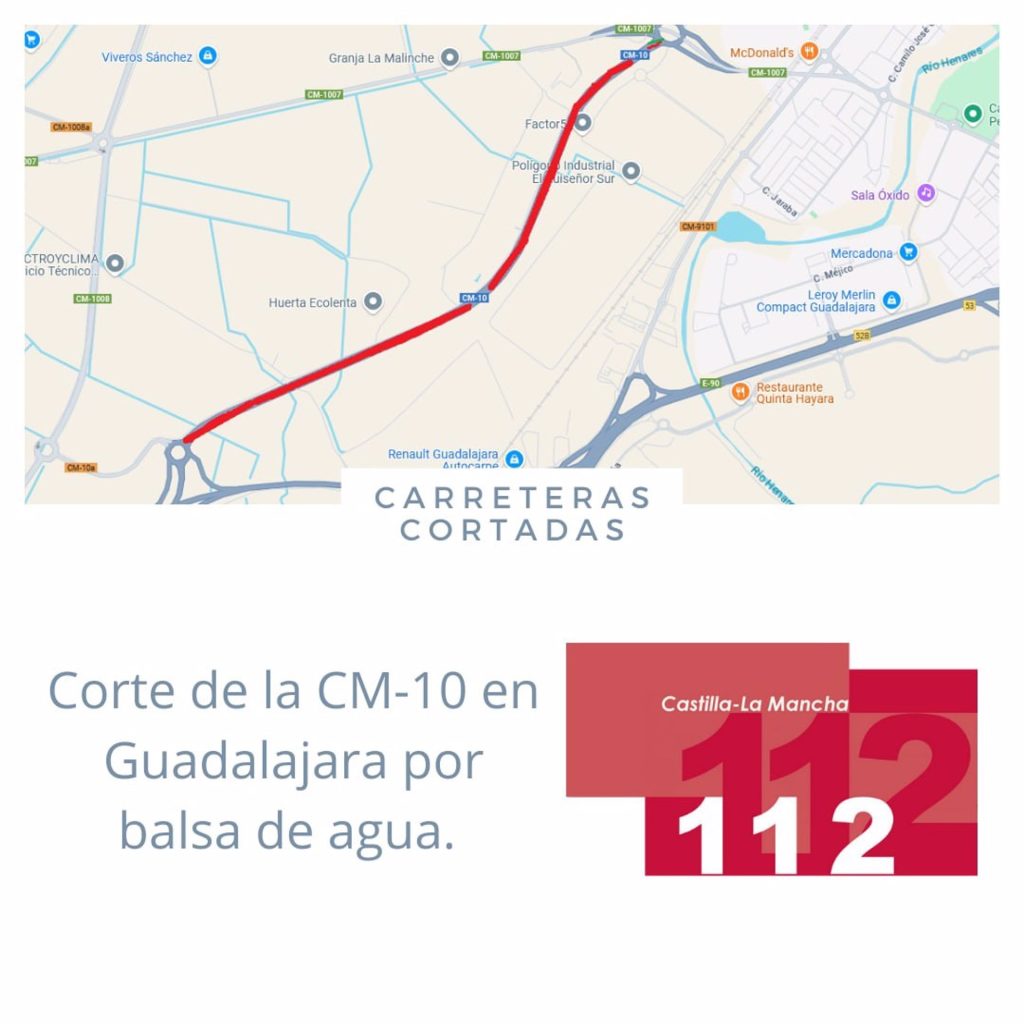 La CM-10 que quedó cerrada al tráfico este sábado por la mañana se ha reabierto tras bajar el nivel del agua que motivó su cierre.
