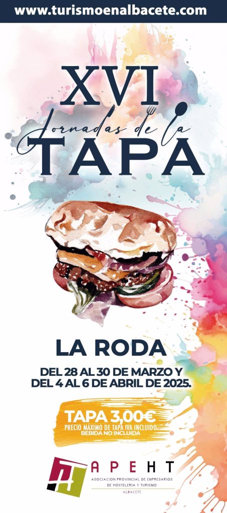 Las XVI Jornadas de la Tapa a La Roda, que se llevarán a cabo del día 28 al día 30 de marzo y del día 4 al 6 de abril, contarán con la participación de doce bares y restaurantes de la localidad albaceteña. El precio de la tapa no podrá superar los 3 euros y aquellos que sellen el pasaporte tras degustar seis tapas entrarán en el sorteo de cinco cheques regalo valorados en 30 euros para canjear en cualquiera de los establecimientos participantes.