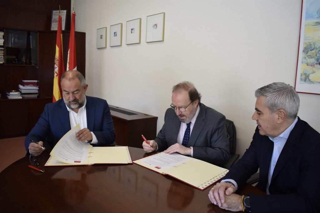 El rector de la Universidad de Castilla-La Mancha (UCLM), Julián Garde, junto a Luis Pinilla Albarrán y Santiago Villanueva Pérez, en representación de Quirónsalud, han firmado un convenio de colaboración por el que, además de promover actividades relacionadas con la investigación, el desarrollo y la docencia, apoyará las iniciativas de la UCLM ‘Trofeo Rector’ y ‘Copa Primavera’.