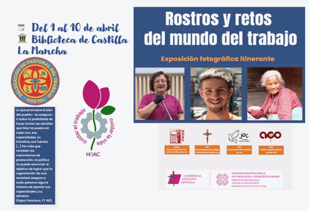 La Biblioteca de Castilla-La Mancha acoge hasta el día 10 de abril la exposición fotográfica ‘Rostros y retos del mundo del trabajo’, una muestra itinerante estructurada en cinco bloques temáticos que abordan cuestiones fundamentales como las condiciones laborales, la vida más allá del trabajo, la lucha por la dignidad laboral y el papel de la Iglesia en el mundo obrero, invitando a la reflexión desde una perspectiva de fe y compromiso cristiano.