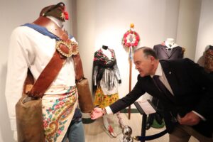 La muestra reúne pinturas cedidas por el artista José Ángel Ramírez, guitarras flamencas de Manuel Cantero Arroyo, trajes flamencos aportados por alumnos del Aula de Flamenco de la UP, y un coche de caballos cedido por Adolfo Sánchez, de la Finca El Tomillar.