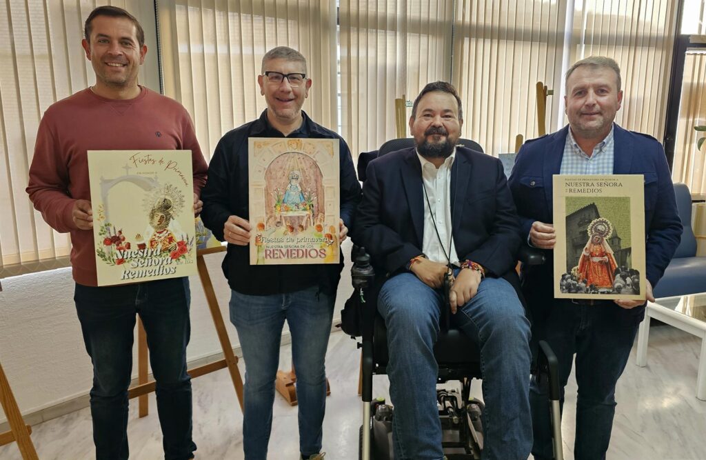 El alcalde de La Roda, Juan Ramón Amores y concejal de Cultura y Festejos, Luis Fernández, junto con el presidente de la Cofradía de Nuestra Señora de los Remedios, Benito Martínez, y el vocal José Ignacio Mejías, lo han presentado este martes.